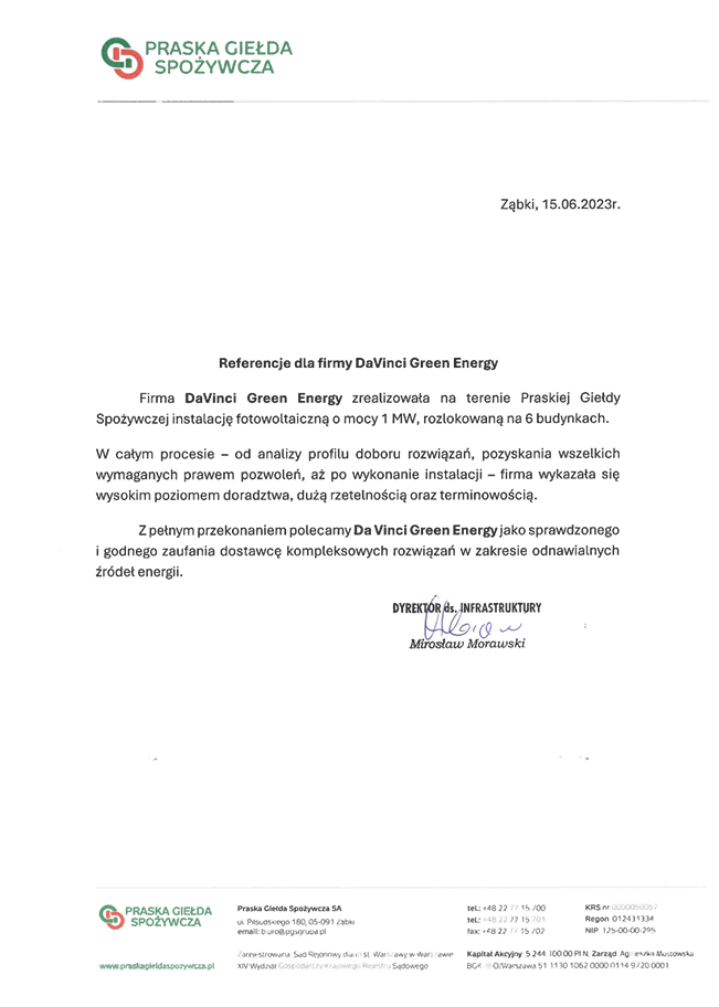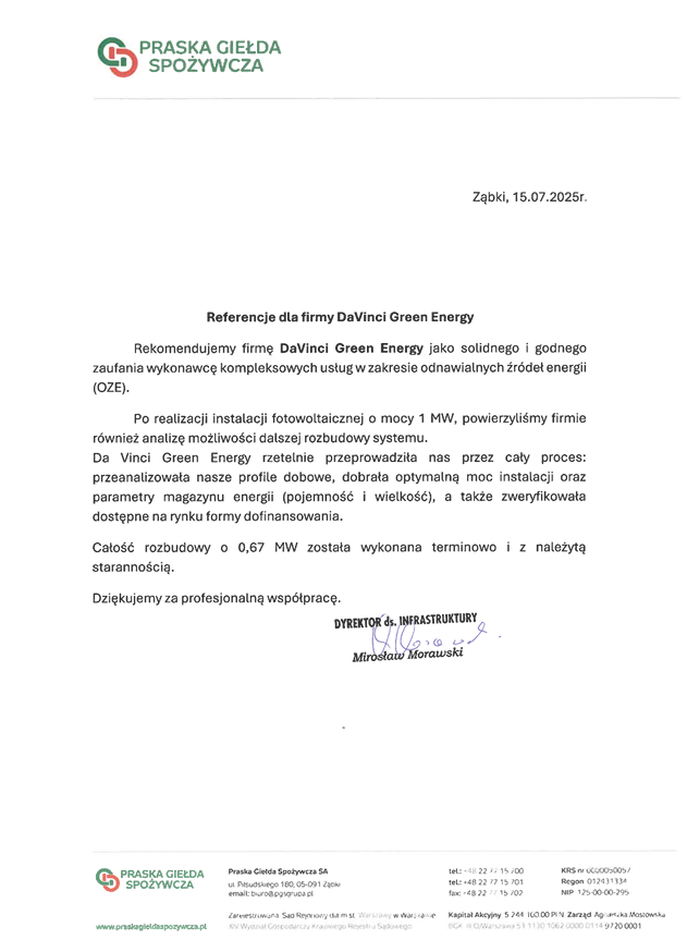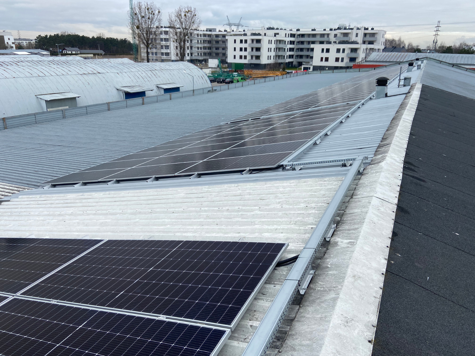 Pierwszy raz wykorzystana konstrukcja Energy 5 zwiększającą kont nachylenia na dachu skośnym pokrytym blachą trapezową. Budowa instalacji nie zakłóciła pracy giełdy.